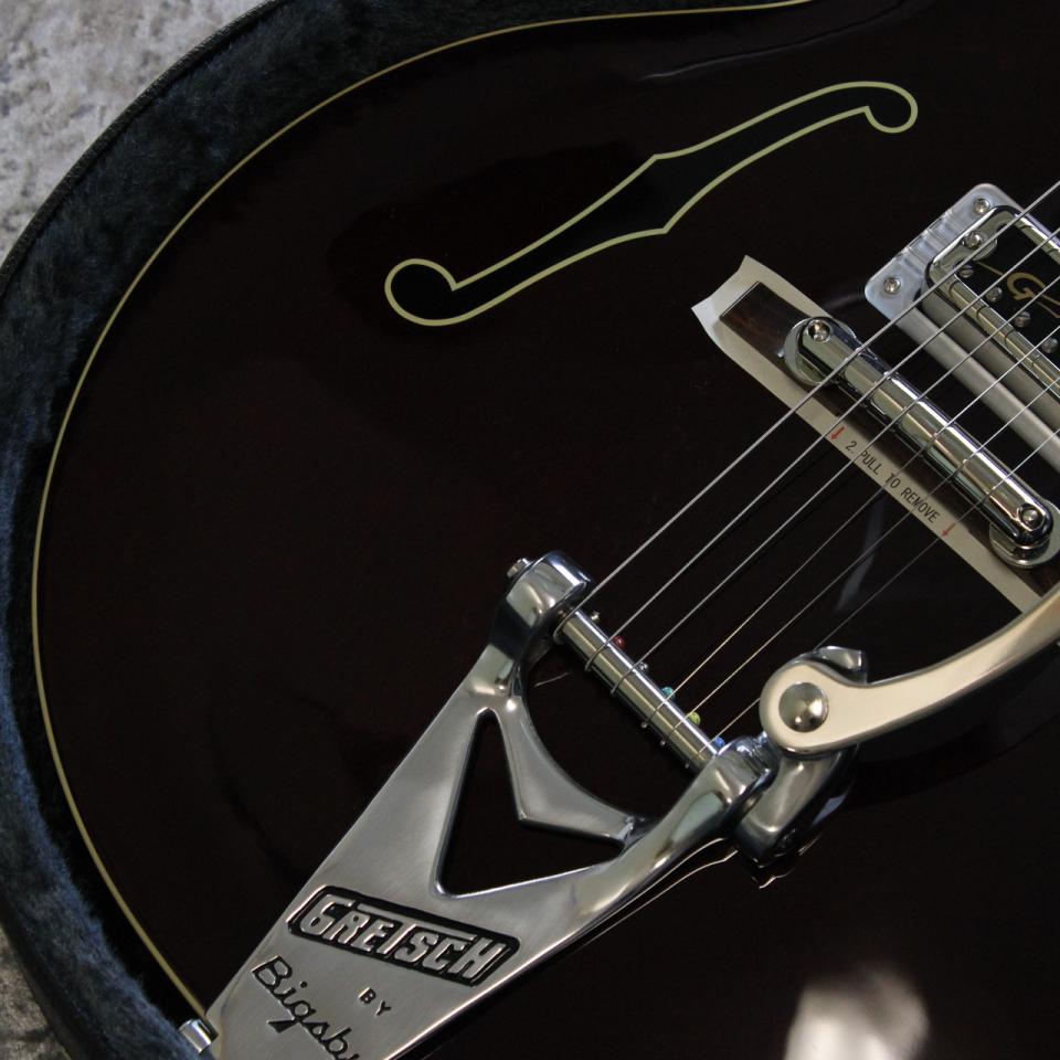 当初は6120の廉価モデルとして生まれながら、華やかな装飾を廃したシックな風貌の中にグレッチ特有の重厚さや気品を残したルックスで根強い人気を誇るモデルとなっております。