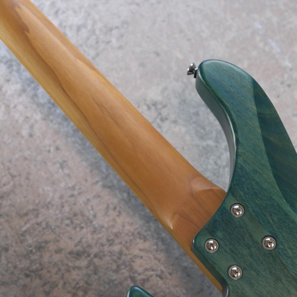 ローステッドメイプルとはメイプルを高温で加熱処理して材の中の水分や油分を揮発させることにより剛性を高めた材。ネックに使用されるとその効果は安定性だけでなくサウンドにも及び、豊かな生鳴りと経年変化したビンテージのようなこなれたトーンを生み出します。高級機種で使われることの多いこの本格派仕様をリーズナブルな価格帯に落とし込んだBacchusの新しい製品ラインナップです。