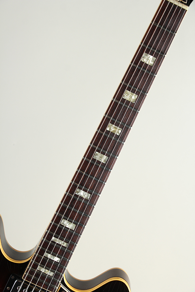ボディ内部はセンターブロック中央部の1弦側に空洞が存在し、ソリッド過ぎない適度なホロウ感があるのが特徴の年代です。甘さと程よい空気感を持ちながら心地よく枯れており、非常に艶やかなトーンを聞かせてくれます。音像の芯も想像以上に太くしっかりとしており、タッチに対してのレスポンスも良く、強いタッチに対して瑞々しく弾けるような感触はこの年代ならではの魅力です。