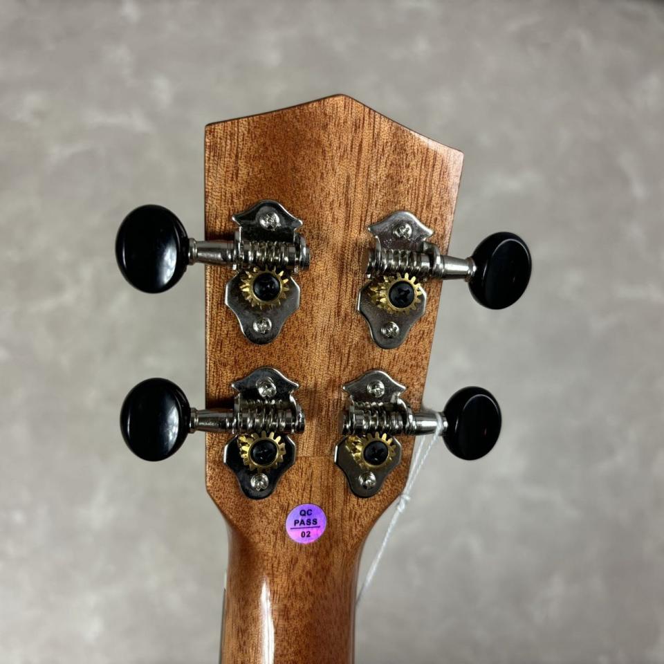 オール・East Asian Koaボディ。East Asian Koa材を使用しているモデルはブラックボタンのオープンギア式糸巻を採用しています。アバロンのサンドホールロゼッタが光ります。