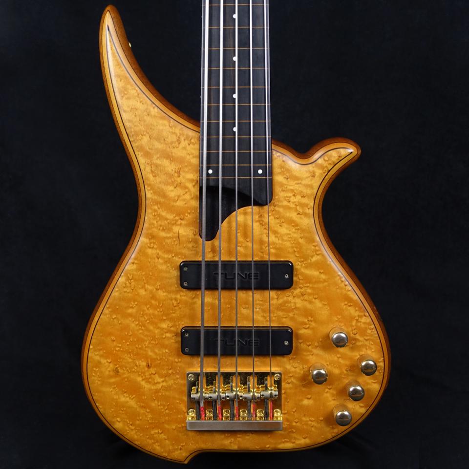 兵庫県尼崎市に本社を置く主にエレキベースを製造している国産老舗ブランド"TUNE GUITAR MANIAC"の代表モデル"TWB"の5弦フレットレスベース。仕様から判断して1990年前半製造の中古品になります。