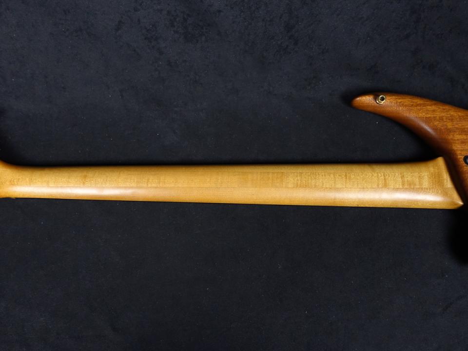 マホガニーバックにエキゾチックな木目を持つバーズアイメイプルトップをあしらったボディ、3Pハードメイプルネックにエボニー指板、フレットラインにメイプルを採用した贅沢なウッドマテリアル。