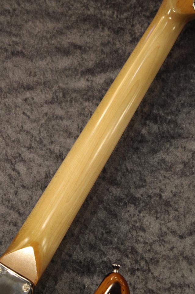 スペックになりますが、所謂60sのトラディショナルなスペックとなっておりますが、ピックアップにはセイモアダンカンのSP90-1のセットを搭載しており、太く粘り強いサウンドが特徴です。そしてこちらのモデルはクリアラッカー塗装となっておりサウンドの鳴りも格別です。