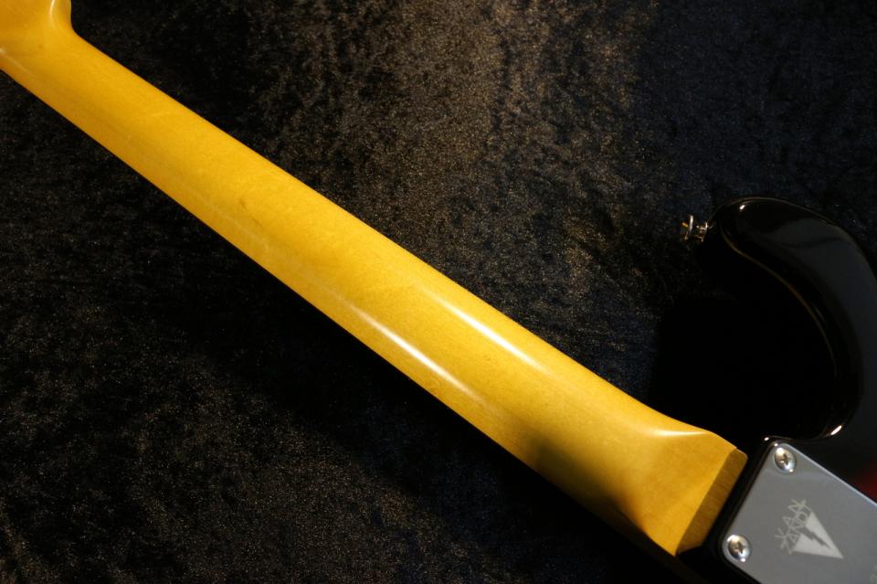 当個体は当店カスタムオーダーとなっています。ボディカラーは62年をイメージしたかなり厚めのサンバーストに赤みを強調した62赤強調ワイドリムカラーでございます。指板Rは7.25Radiusと、かなりきつめのカーブ仕様でございます。特にコードプレイやカッティング、バッキングをメインとしたプレイヤーやネックを握り込むスタイルのプレイヤーにフィットするグリップ感となっています。