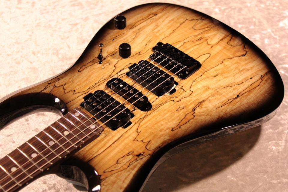 ひときわ存在感を放つのが、何といっても5Aスポルテッドメイプルを贅沢に使用したボディトップ。