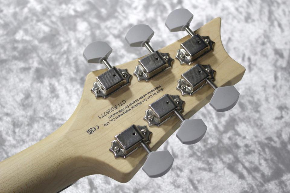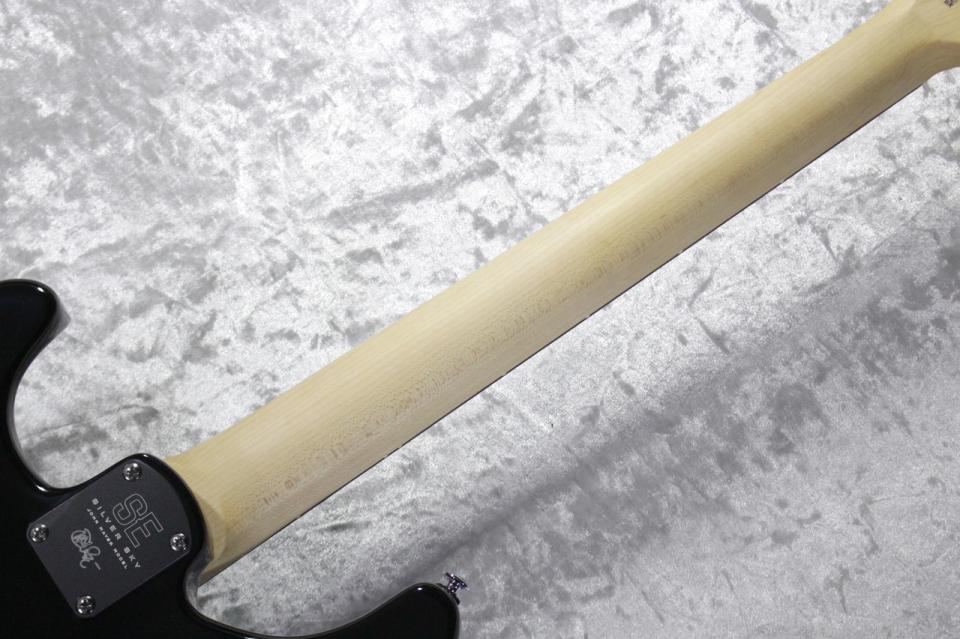 2点支持のスチール製トレモロ、ボーン・ナット、ヴィンテージ・チューナーは高いチューニングの安定を実現し、従来のPRSのシェイプから左右を反転させたヘッドストック・デザインと、その前面からアクセス可能なPRSオリジナルのダブルアクション・トラス・ロッドも、SE Silver Skyの大きな特徴となっています。