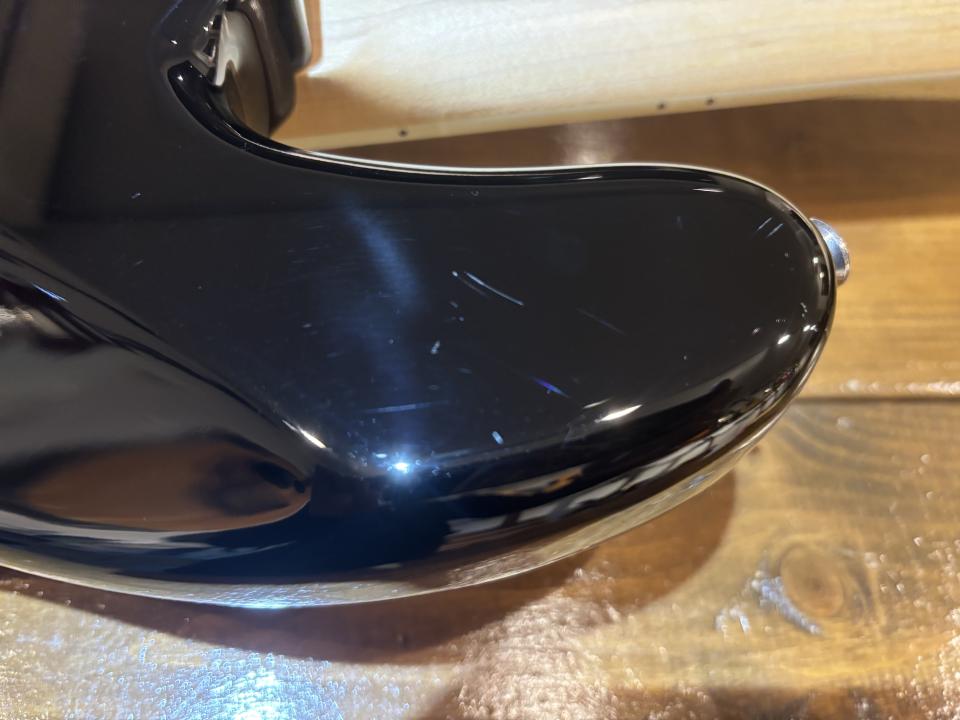 ブラック・ボディのメイプル指板、べっ甲ピックガードと有りそうであまり見ない仕様の本器。