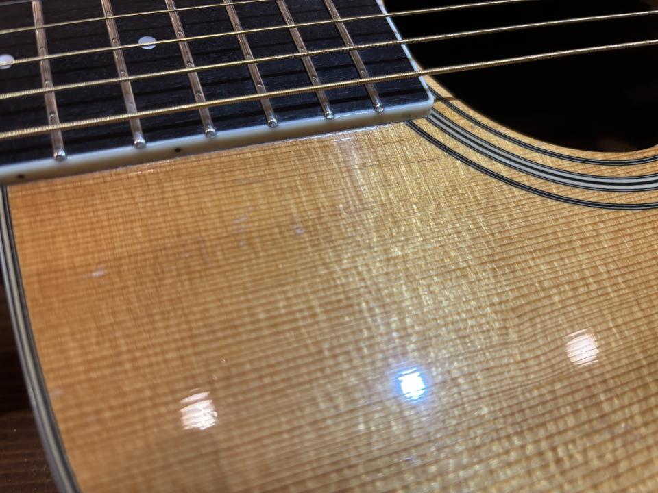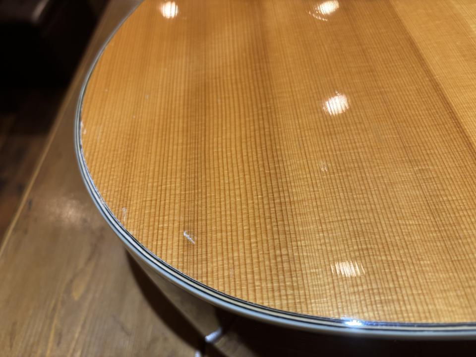 状態は6弦側ロゼッタの上部に、約20mmほどのクラックがありますが、ブレイシングが真下にありクラック自体は軽度なものと思われます。