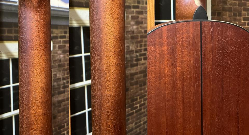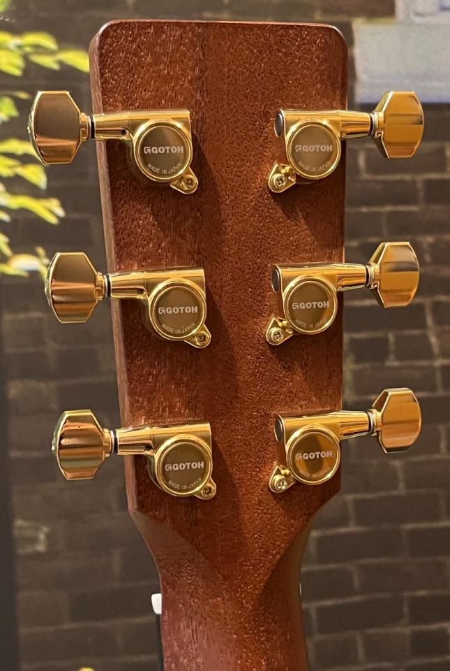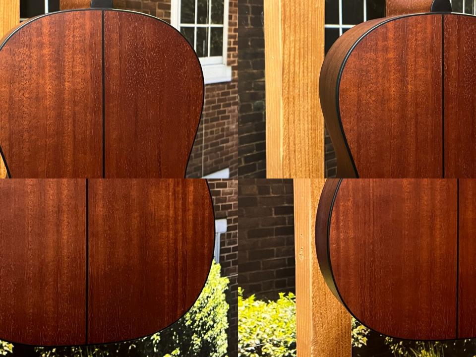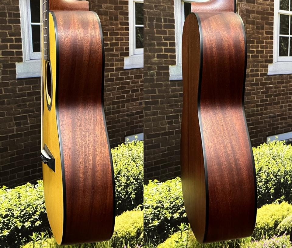 表板にスプルース単板材、側板・裏板にマホガニー単板材を使用したオール単板仕様。