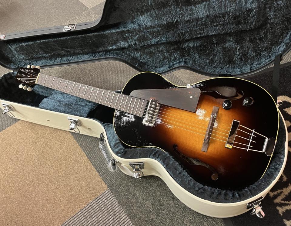 1930年代のフルアコースティックギターを彷彿させるスモールボディスタイル,こちらはピックアップ搭載モデルです。