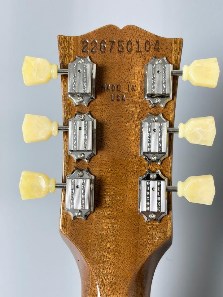 2ピースメイプルトップ&ソリッドマホガニーバックボディ、マホガニーネックにローズウッド指板、ABR-1ブリッジ、アルミテールピース、ゴールドトップハット等、'50sレスポール王道のスペックです。