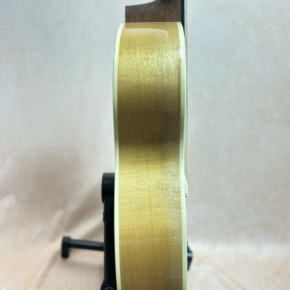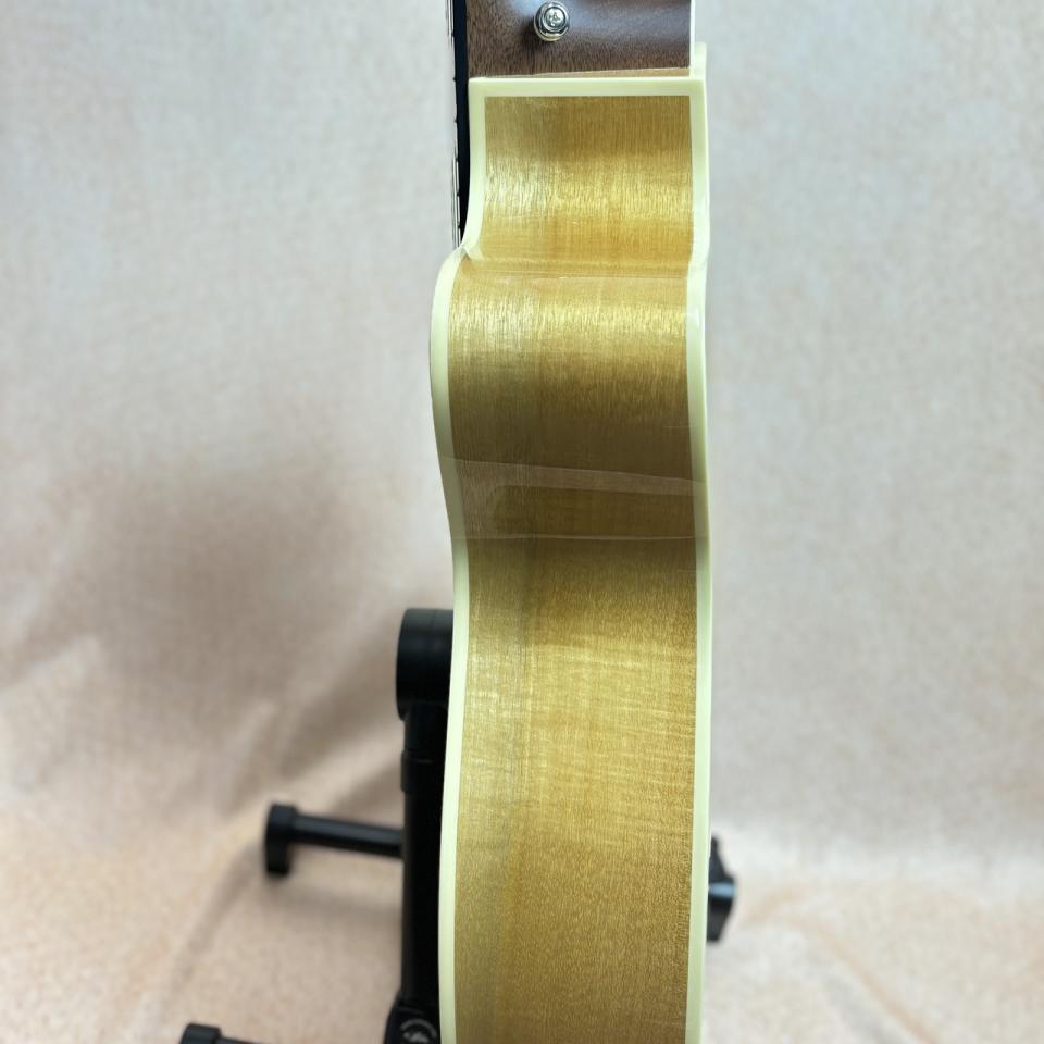 このモデルの特徴は小ぶりで薄いボディと628mmの短めなスケールによる、演奏性の高さとレスポンスの良いサウンドが扱いやすく、エレキギターからの持ち替えを行うプレイヤーにもピッタリな1本になっております。