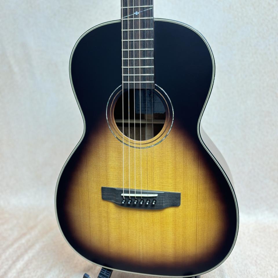 温もりあるマホガニーサイドバックと、美しいサンバーストが融合した国産モデル