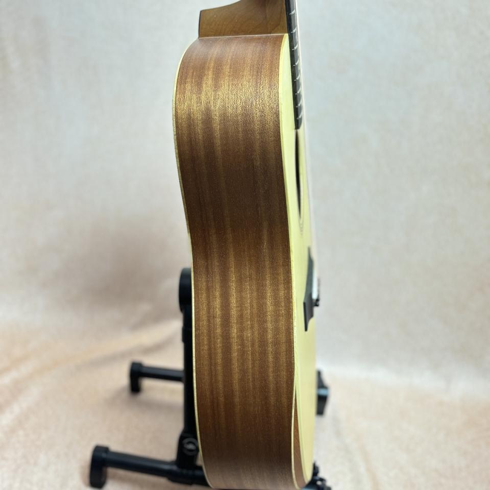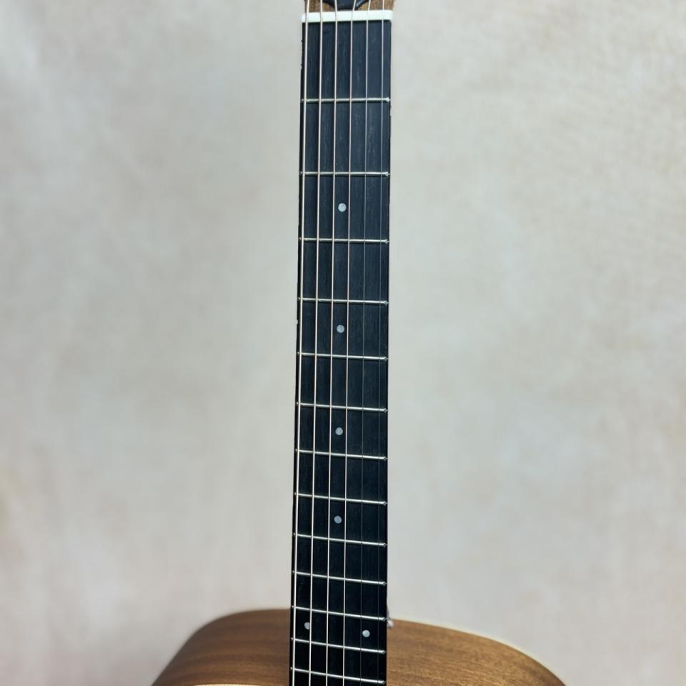 1-11/16インチの狭めのナット幅でフレットに余裕を持たせ、なめらかで弾き心地のいいアームレストを採用しており、初めてのTaylorでもすぐに馴染める仕上がりになっています。