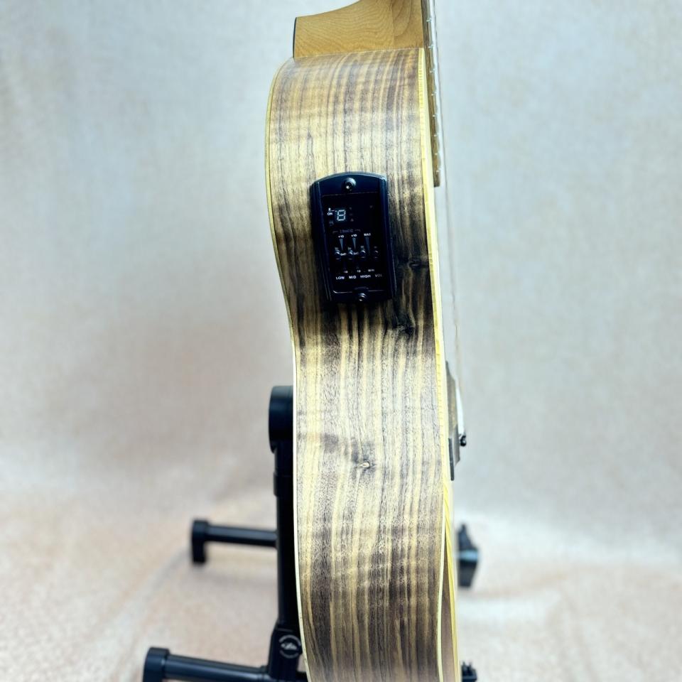 単板のトップは、音抜けが良く迫力のあるサウンドを響かせ、ロウワーバウトに施されたアームレストは、ストラミングする腕により快適な感触をもたらします。