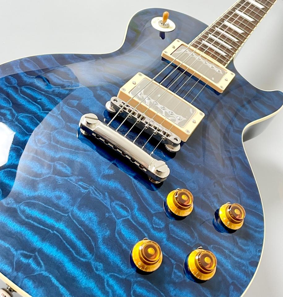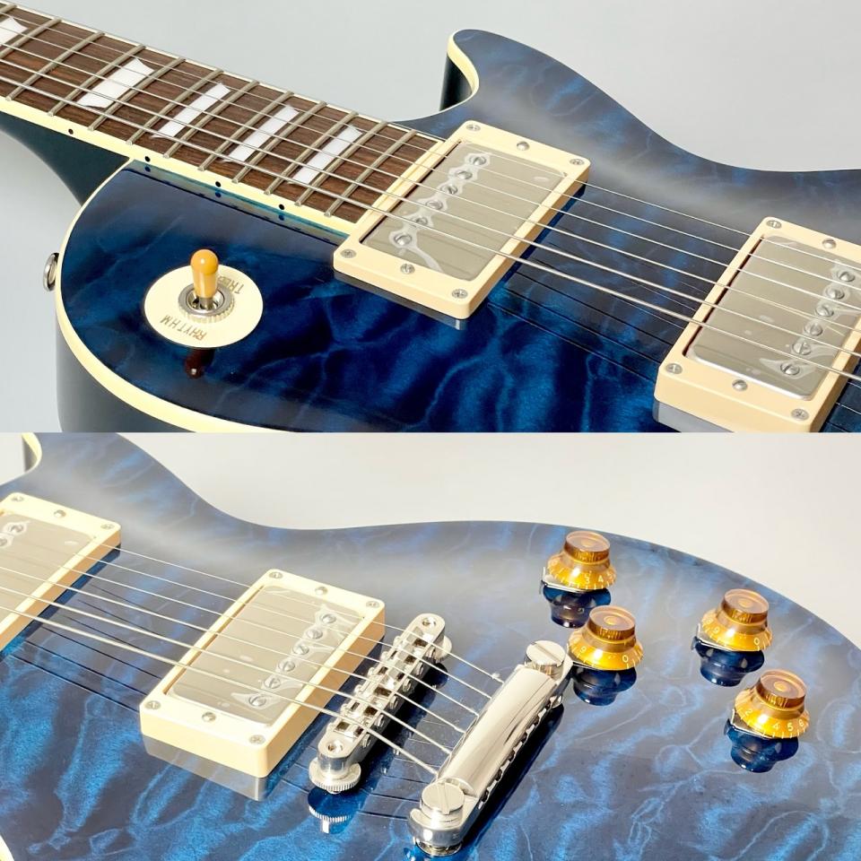 キルトメイプル&メイプルトップに2ピースマホガニーバック。1ピースのマホガニーネック、ローズウッド指板といった王道の木材構成を踏襲しており、リッチな中低音域を持った鳴りが魅力です。