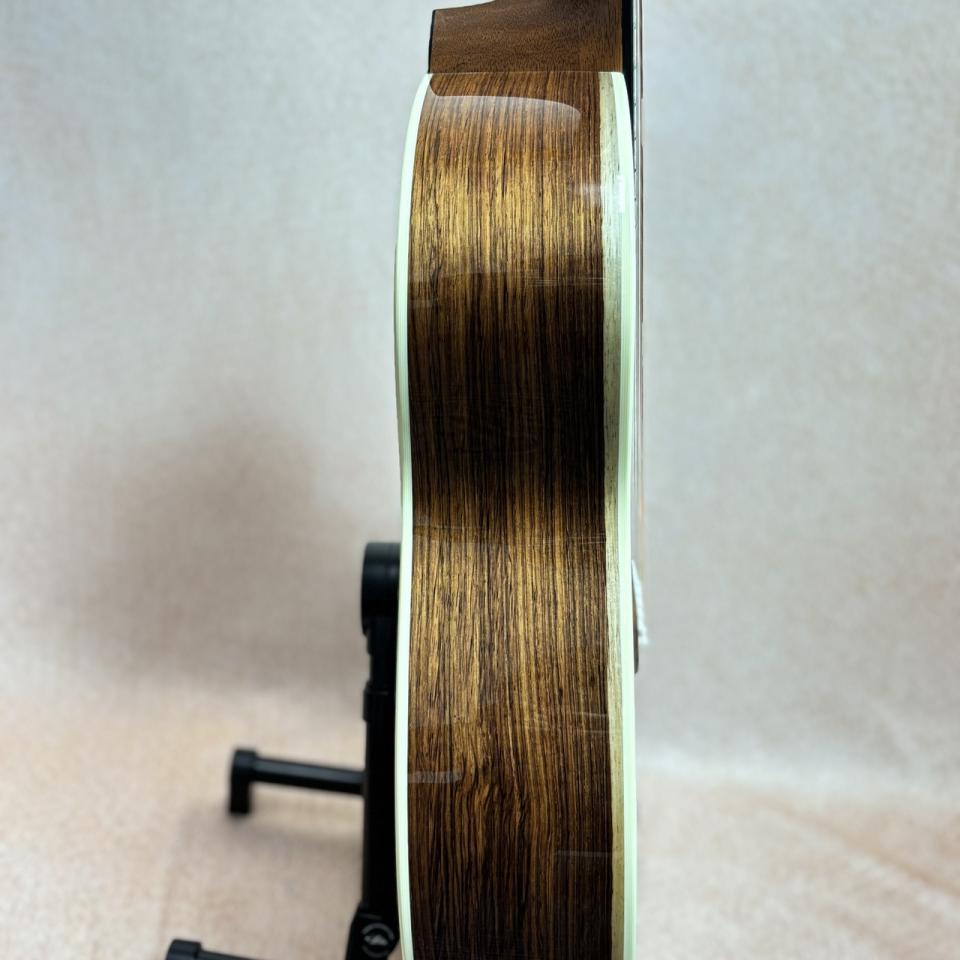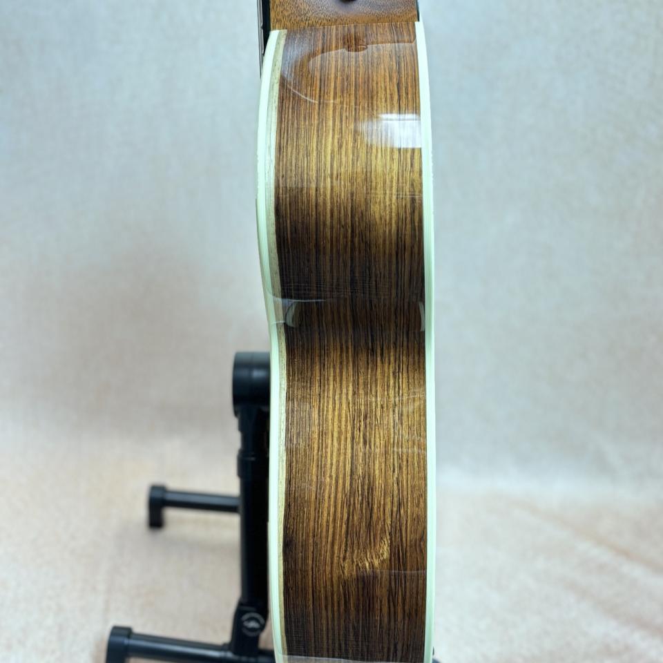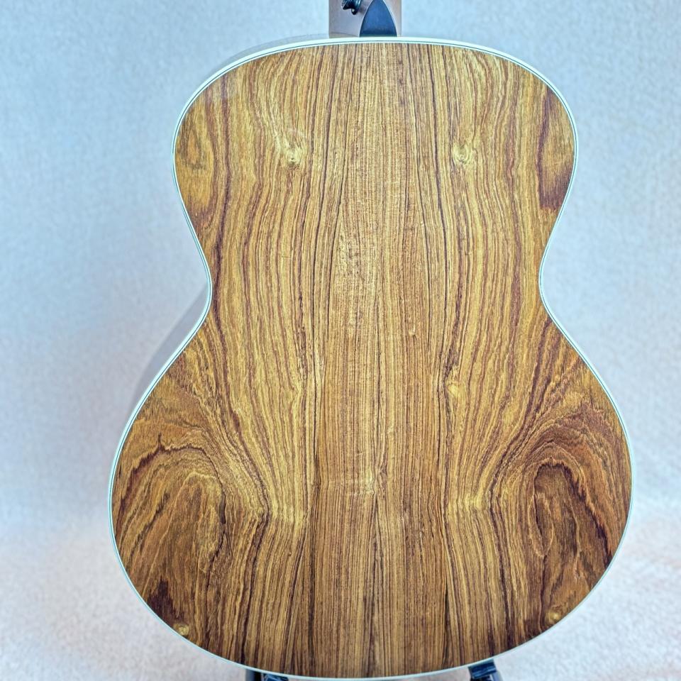 本機はバック材に加工の難しいホンジュラス・ローズを採用、硬質で重さもあり重厚なサウンドが魅力!