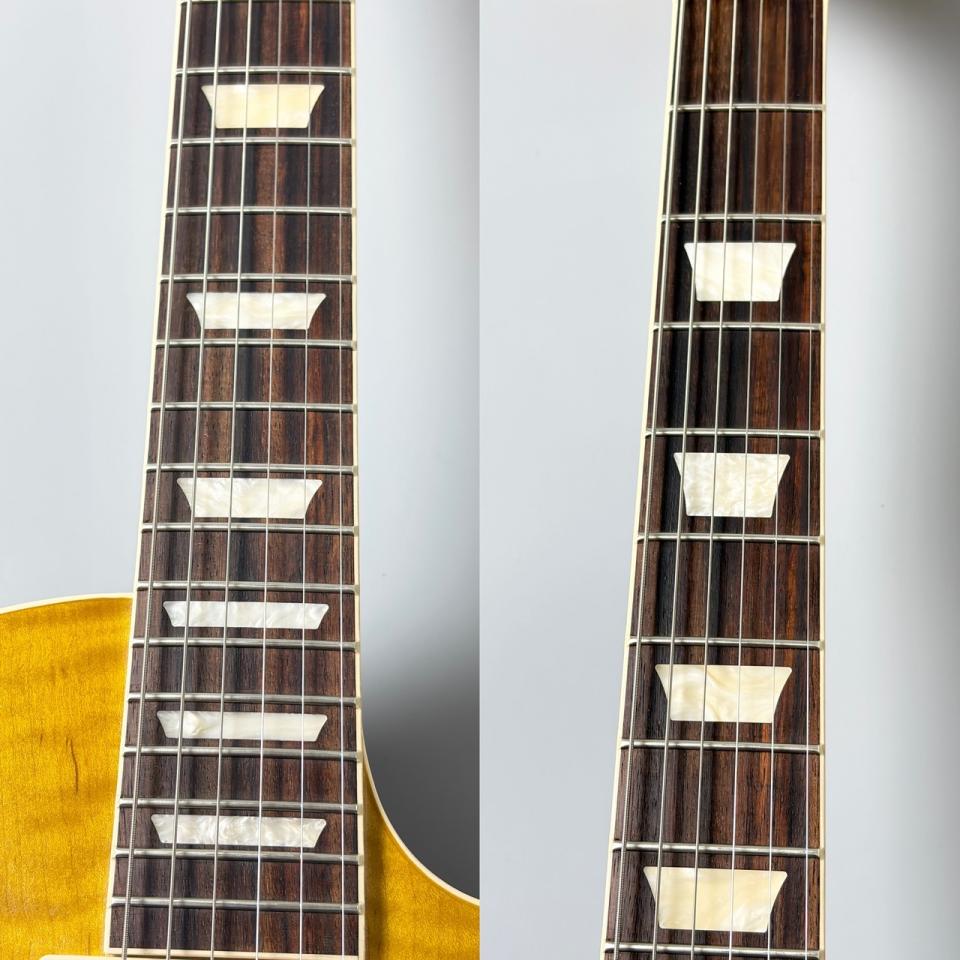 現行品のLes Paul Standard 50s 同様に、完全なソリッドのボディを採用し、厚みのあるしっかりしていながらも握りやすいネックシェイプに、オリジナルに忠実なブリッジ"ABR-1"を搭載しております。