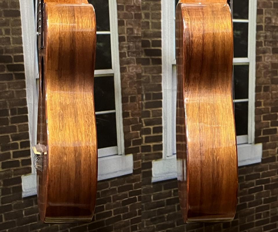 ボディトップが鳴っている振動をサイド、バックまで一本の骨で繋げることで全身を鳴らします。