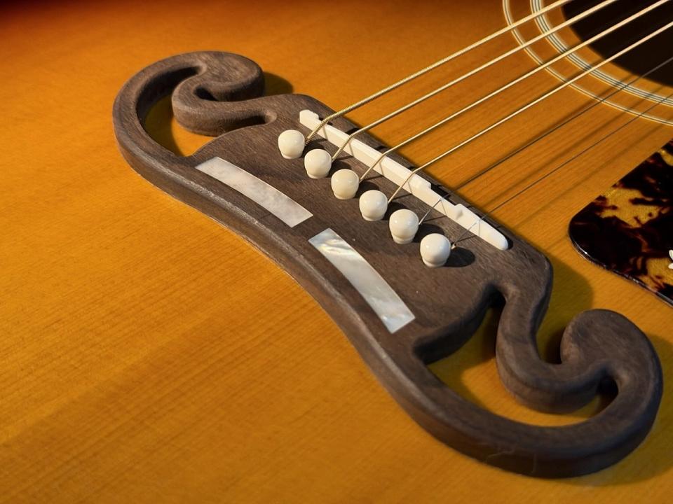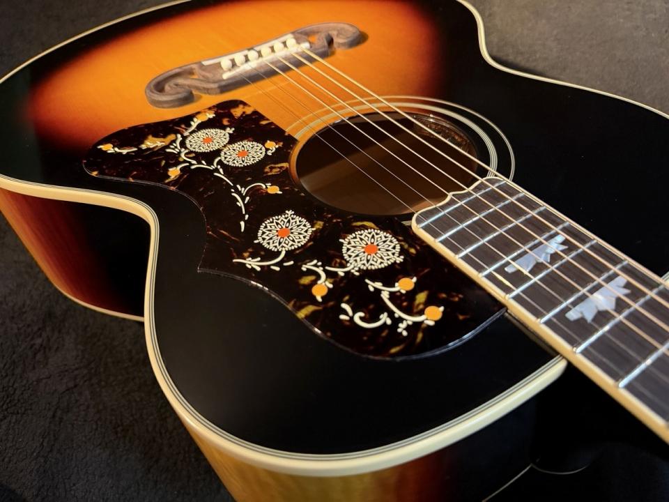 SJ-200スタイルのピックガードにはヴィンテージ機さながらのデザインを採用。