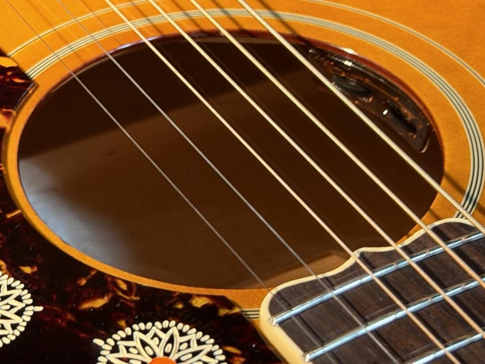 SJ-200スタイルのピックガードにはヴィンテージ機さながらのデザインを採用。