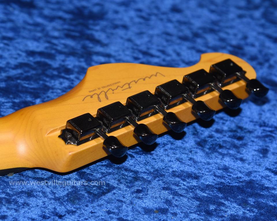 塗装につきまして、トップコートにはグロス(艶有り)のラッカーを用いております。そのため、ちょっとしたことで擦りキズなどが付いてしまいがちですが、こちらは何卒ご容赦下さいませ。なおネック塗装には、サラっとした手触りのマットフィニッシュをチョイスしました。トップコートの艶消し塗料は高い耐久性のポリ系で、こちらも薄く丁寧にムラなく均一に仕上げられております。