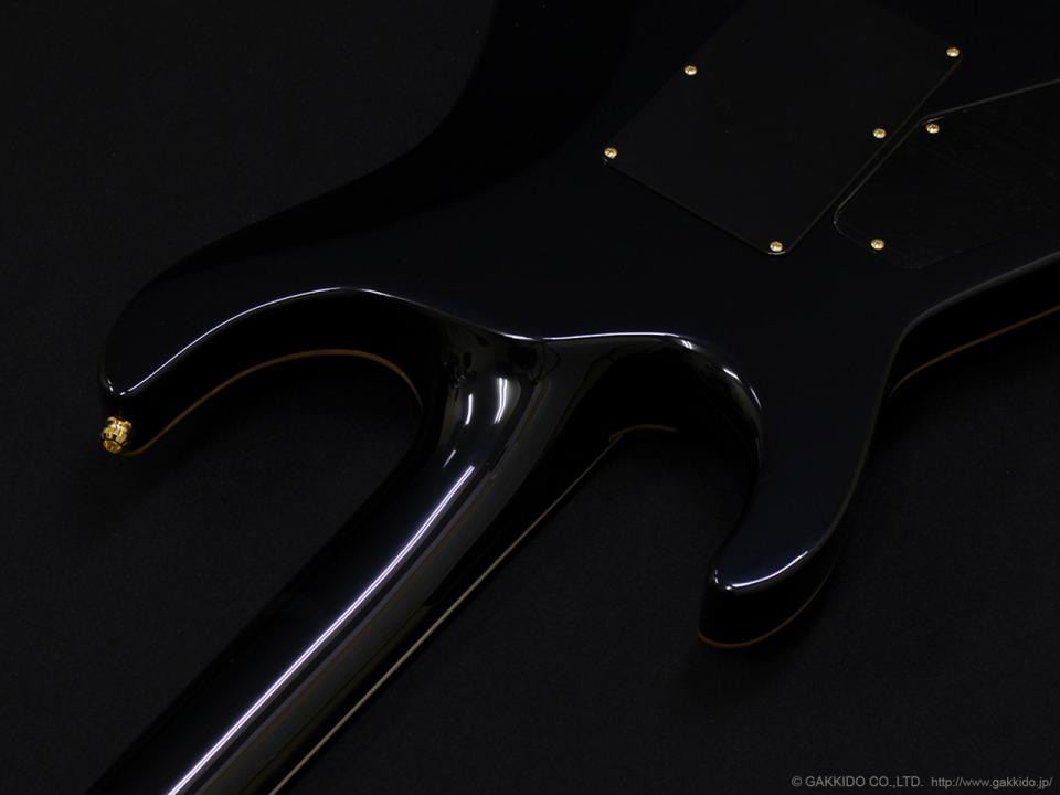 ゴールドパーツが高級感を演出し、さらにはヘッドのEDWARDSロゴは薄い白蝶貝を貼り付ける螺鈿を採用、また、ESPの50周年ロゴがトラスロッドカバーとヘッドバックに入れられています。まさにアニバーサリーモデルに相応しい特別感を備えたルックスに仕上がっています。