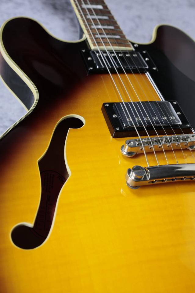 セミアコらしい暖かみのある太い中域、明るさもあり、クリーンやクランチなどによく合うサウンドとなっています。