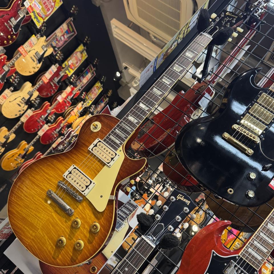 Gibson(ギブソン):エレキギター、アコースティックギター、フラットマンドリン、バンジョー等のアメリカのトップメーカー。エレキギターではLes Paul,SG,FlyingV,ES-335,ES-175等、アコースティックギターではJ-45,J-50,L-0,L-1,LG-1,LG-2,LG-3,J-200,ハミングバード,ダブ等、アーチトップではL-5,L-48,L-50等が有名。(Gibson/ギブソンのキーワード検索結果はこちら|Gibson/ギブソンのブランド別モデル名一覧)