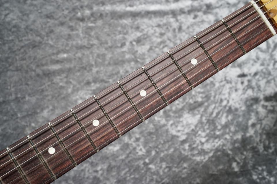 やや薄手のDeep"C"シェイプ、ゆるやかな9.5"Rの指板に背の高いナロートールフレットの22F構成というモダンスペックはそのままに、