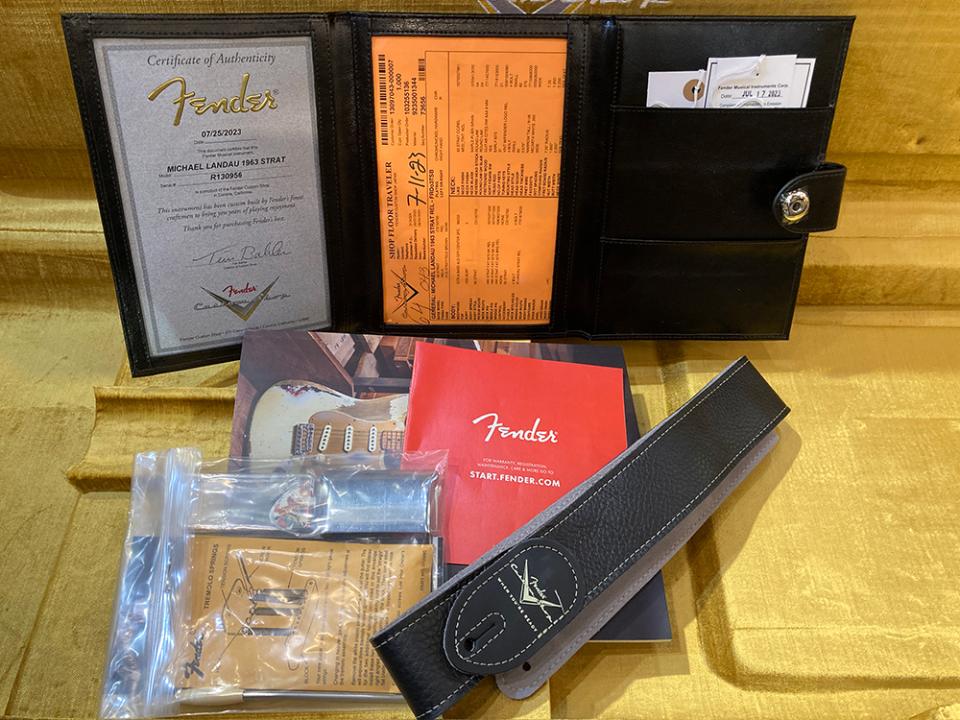 フェンダーカスタムショップ・アーティスト・コレクション、マイケル・ランドウ・ストラトキャスターは、ランドウ自身が所有している 1963年製ストラトキャスターを基に製作。スモールヘッド仕様の1963ストラトはフィエスタ・レッド/3トーン・サンバーストのマルチレイヤー・フィニッシュとなっている。そしてユニークなネック形状、ニトロセルロース・ラッカー・フィニッシュ、ラウンド・ラミネート・ローズウッド・7.25インチ・ラジアス指板、6105フレット、カスタム・ピックアップ、カスタム・ヴィンテージ・スタイル・トレモロ・ブリッジを採用しています。