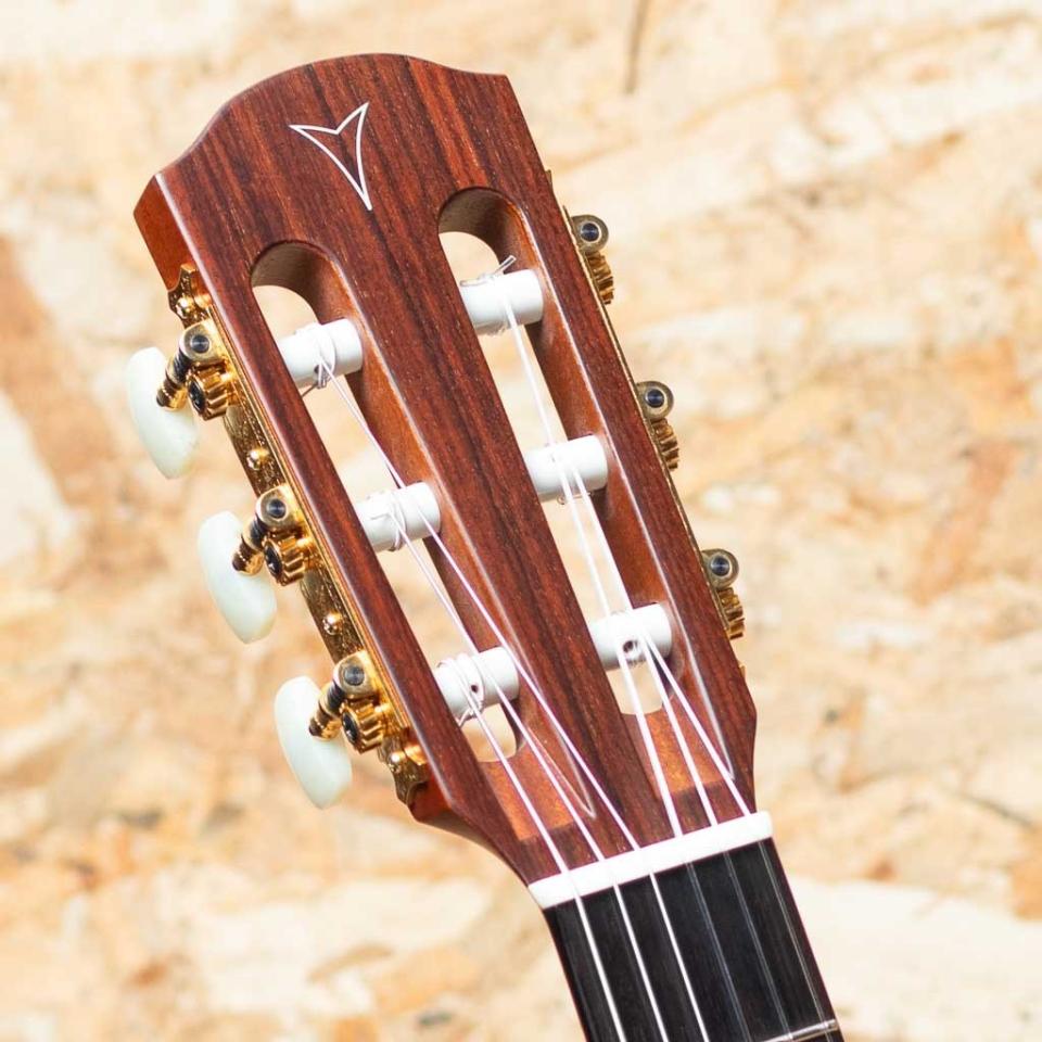 ・狭めの45mmナット幅に加え、鉄弦に近しいややV気味のネックシェイプで鉄弦やエレキとの持ち替えでも違和感少なく演奏可能