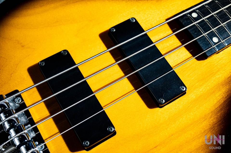 もはやJモデルとしては定番となったボディシェイプ。ホワイトアッシュボディは、立って構えた時に太ももに当たる部分が大胆にカットされた、ベーシストならご存知の特徴的バックカット。