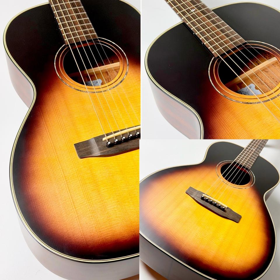 温もりあるマホガニーサイドバックと、美しいサンバーストが融合した国産モデル
