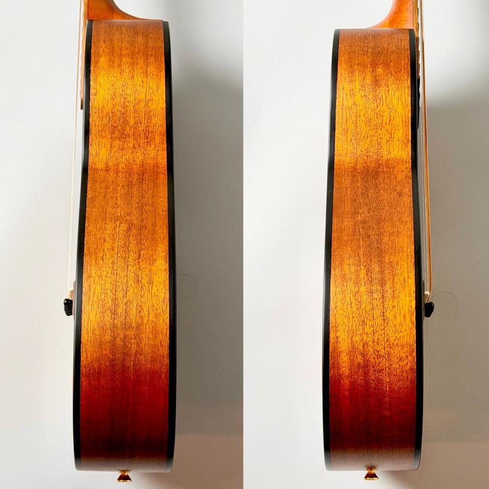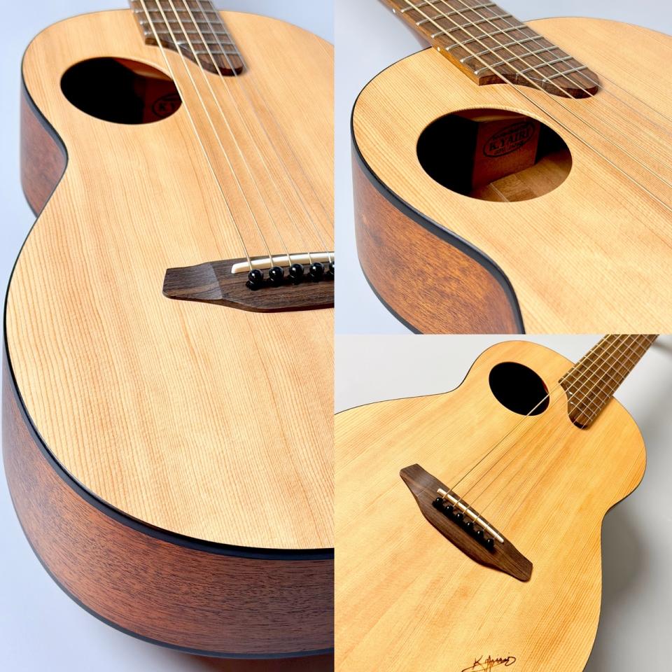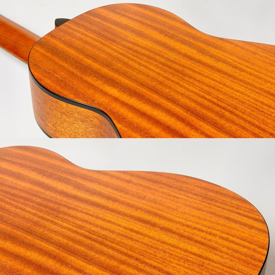 表板にスプルース単板材、側板・裏板にマホガニー単板材を使用したオール単板モデル