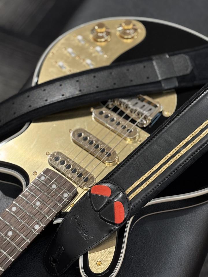 また、ストラップのフロントにピックポケットが付いているので演奏中ピックを落としてしまっても安心できます。