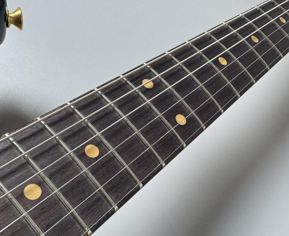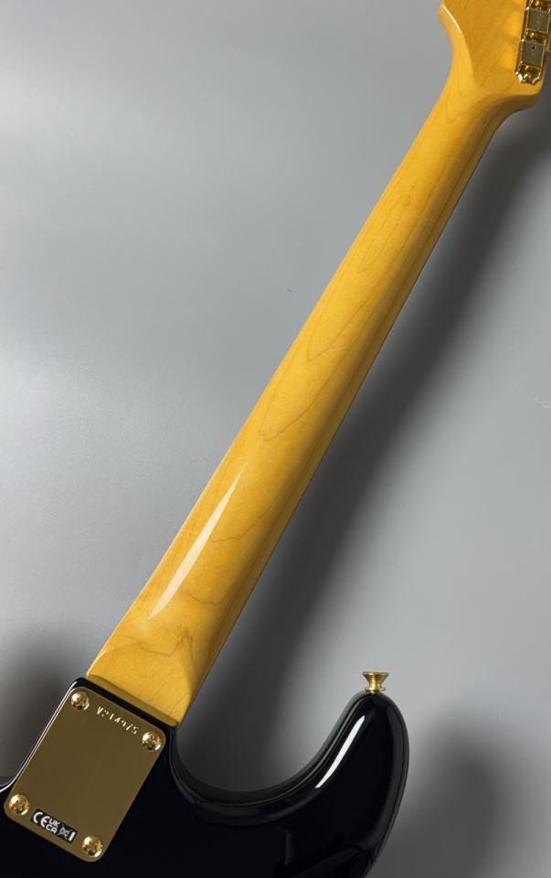 伝統の1961年製ストラトを忠実に再現しながら、ゴールドパーツで上品な輝きを添えた、まさに“高貴なブラック・ストラトキャスター”です。