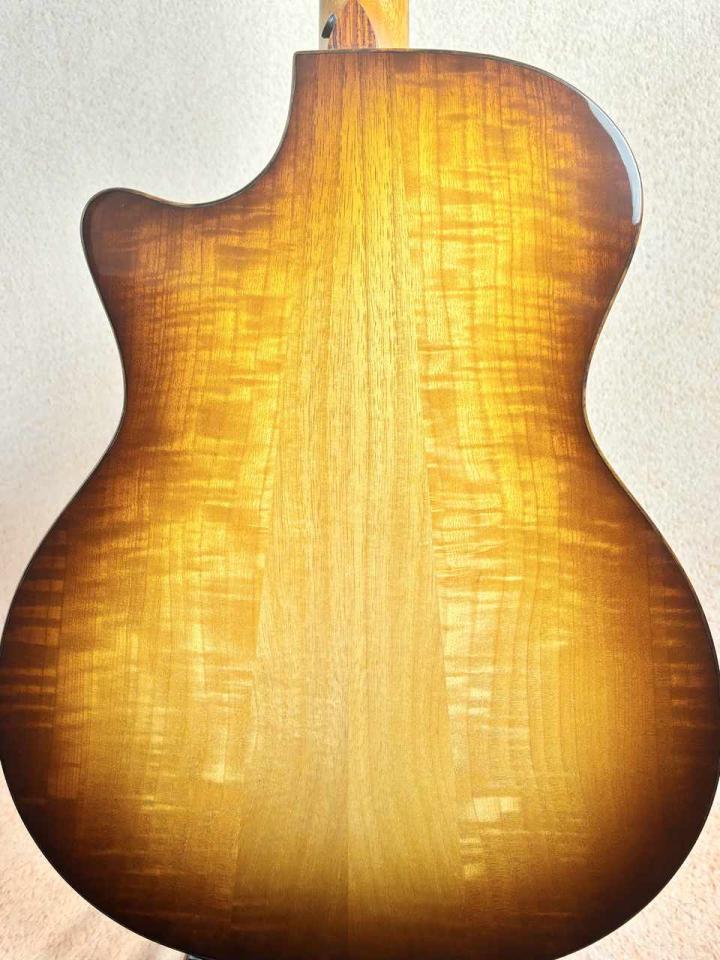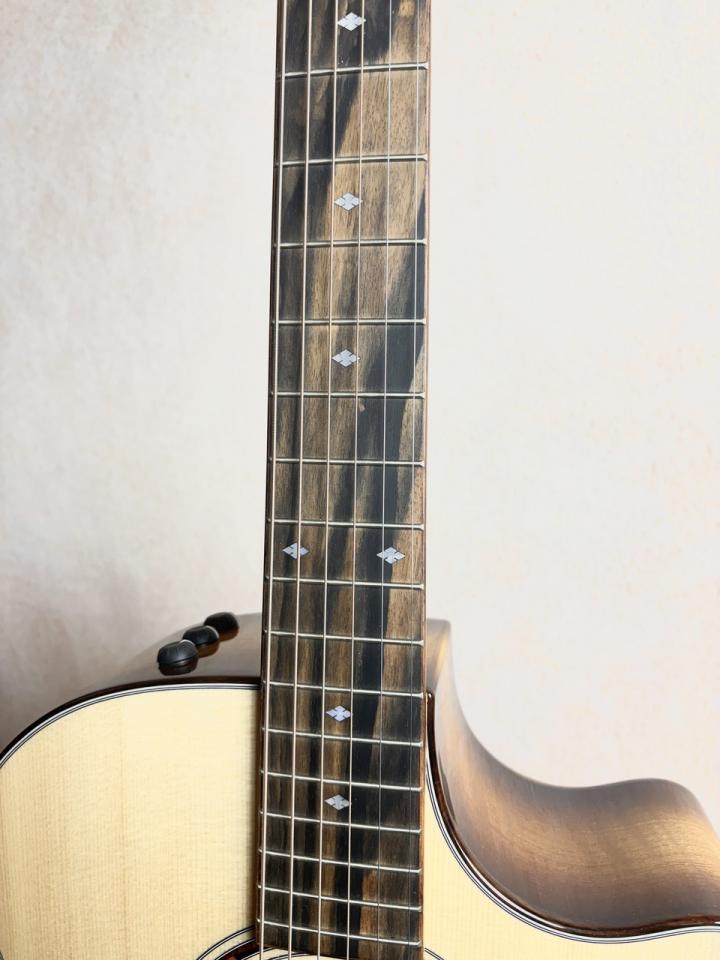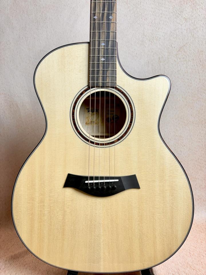 Taylorの個性でもある、抜ける様な明るい音色を残しつつ、優しく包み込む様な優しいサウンドも兼ね備えており、フィンガー奏法との相互性が抜群です。