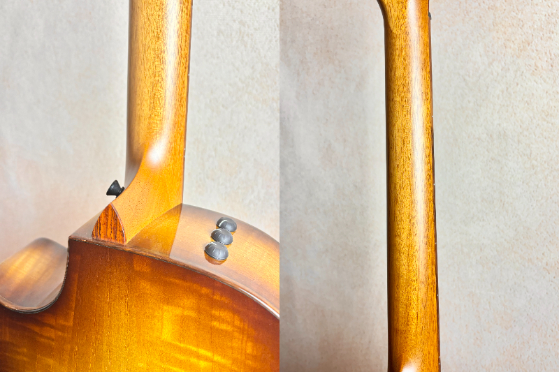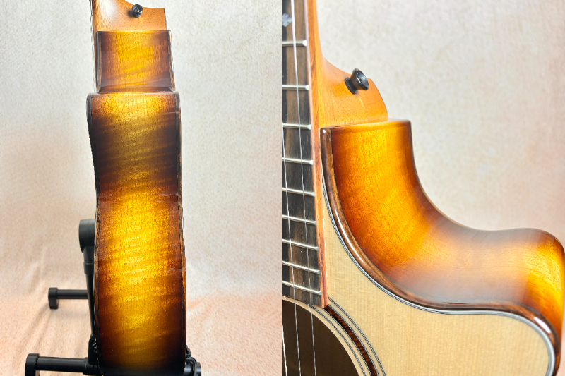 ナチュラルカラーを採用し、シンプルながらも高級感のあるデザインが特徴です。サイドバックのアンバーアッシュがサンバーストの様な模様となっており、非常に目を奪われる美しいデザインとなっております。