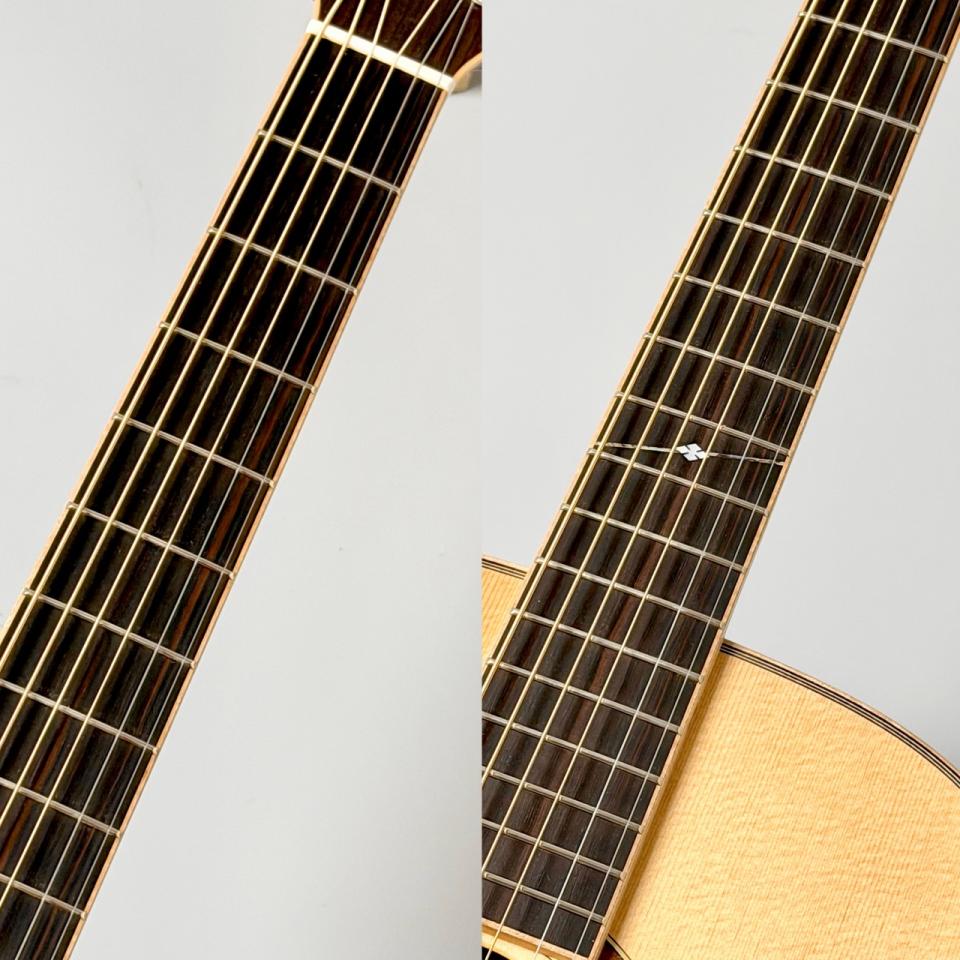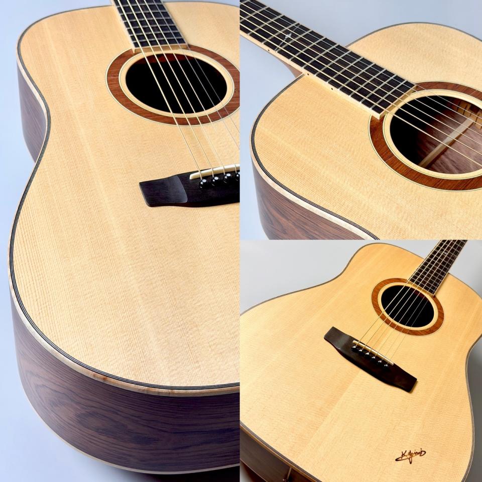 岐阜県可児市にある日本屈指の国産ギターメーカー K.yairi。すべての楽器一本一本が職人による手作業で行れ、に精度の高さと日本の環境や日本人の体格に合った楽器作りで1970年代から現在に至るまで国内外のミュージシャン、ギタリストに愛用されています。少数精鋭の職人たちから生み出されるハンドメイドと日本製に拘った楽器は、時間を掛け、丁寧に磨き上げられていき、奏者の手に渡った後もその人に併せて調整を行っていく。とりわけネックシェイプには拘りがあり、スリムでありながら少しVシェイプが混ざったフィット感が高く、握りやすいネックシェイプ。見た目ではわかりにくいですが握ってみるとナット幅42mmとK.yairiのネックシェイプの魅力を感じます。細めのネックシェイプを好まれる方はもちろん、これからギターを始めたい方や、手の小さい方へオススメのネックです。ギター製造の前段階、木材の乾燥工程でも凡そ5年の歳月をかけることで日本の環境下でも変化の少ない木材を使用しています。それによりK.yairiは長く愛用されるギタープレイヤーの『相棒』と言えるようなギターを数多く生産しています。