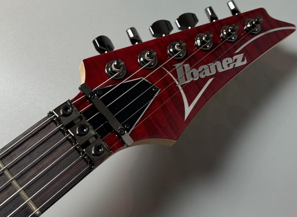 このモデルのキャラクターとしてはRGシリーズと比べてもより幅広いジャンルに対応できるトーンを持っております。出荷時で10-46ゲージの弦が張られている為、09-42ゲージに比べてクリーントーン時のミドルレンジに芯があるような特性も併せ持っております。