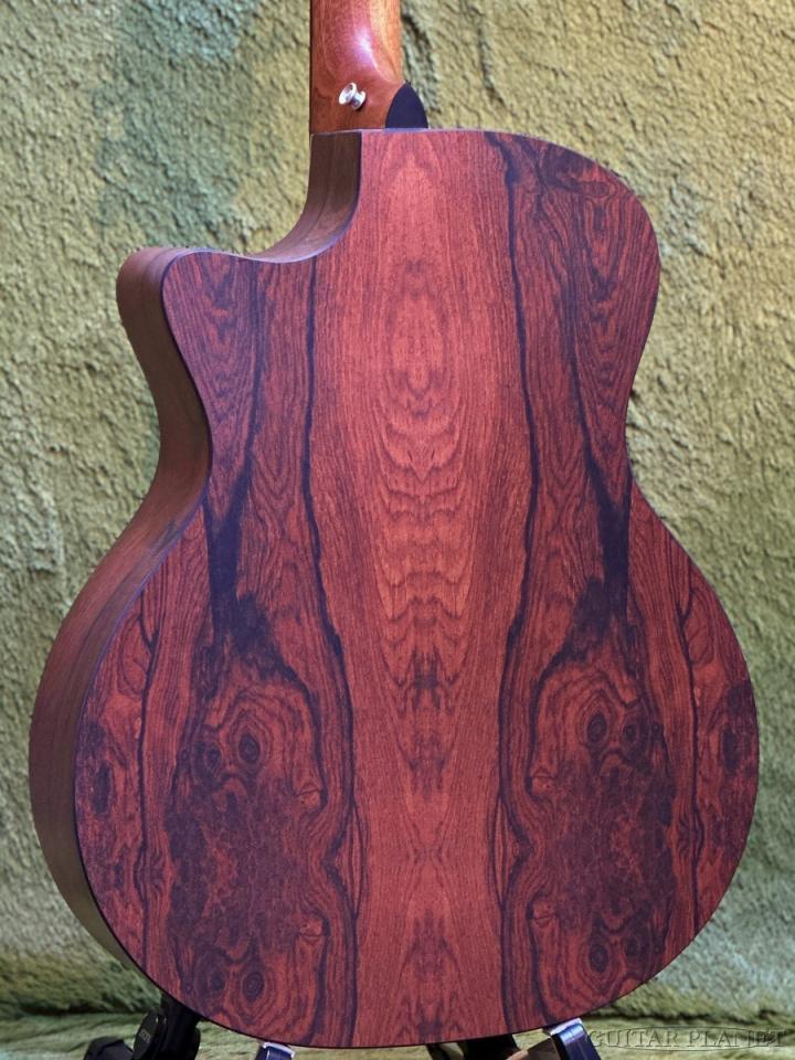 渦を巻く豪快な杢目が出ることで知られる銘木、ココボロの柄をボディに施し、存在感のあるルックスを有しています。