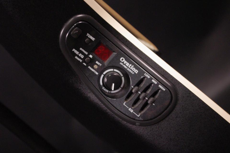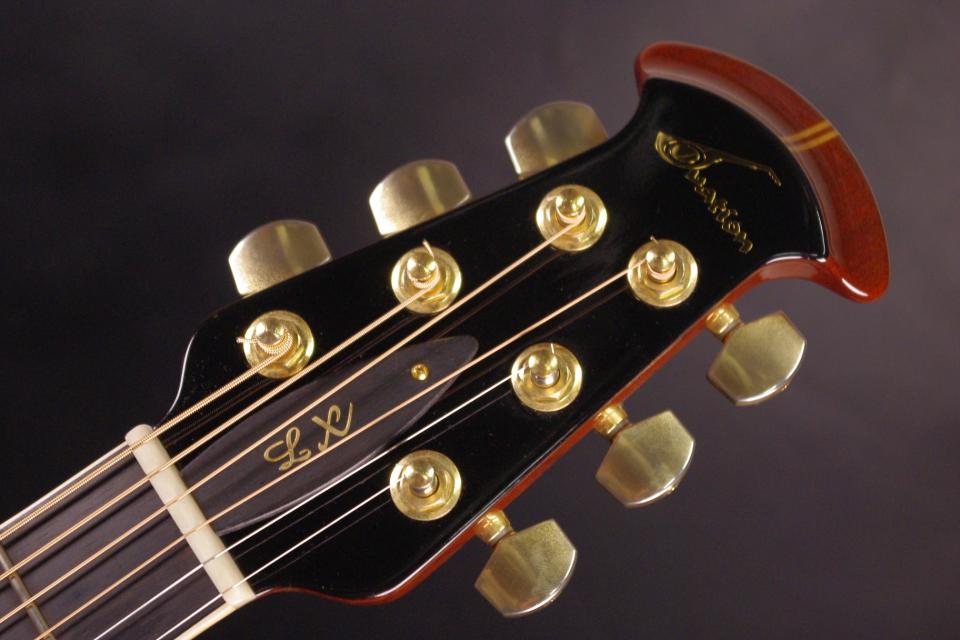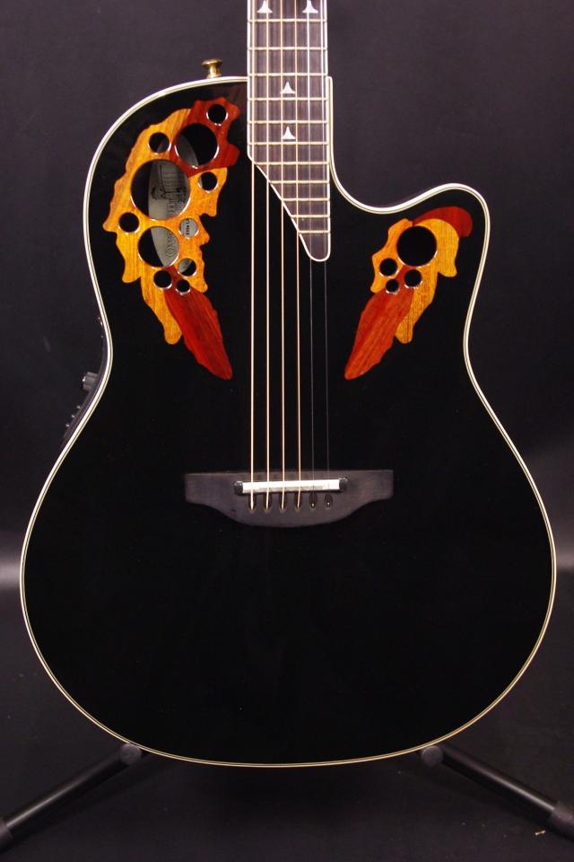 2004年に生産されたOvation Elite LX がブラックフィニッシュで入荷しました!!トップはシトカスプルース、サイドバックにはリラコード、指板とブリッジにはエボニーを採用、ボディは薄いスーパーシャロウボウルにカッタウェイ仕様でライブでも扱いやすくハイポジションまで押さえられるのも魅力です!細かい傷、使用感はありますが20年以上経過しているわりには外観も綺麗で演奏性も優れていますので安心ですゴールドペグ、ピックアップなど主なパーツもオリジナルで残っています。ナット幅は約43mmの標準サイズで幅広い演奏でお楽しみいただけます。ネックのアングルも理想的でトラスロッドの動作にも余裕がありました。フレットの高さもあり長期で安心です。弦高は12フレット6弦側で約2.1mm、1弦側で約1mmの高さでハイポジションまでストレスなく押さえられます。弦高調整に必要なサドル下のシムも数枚入っています。お好みに合せた微調整にもお応えいたします。ピエゾマイクの輪郭のくっきりとしたキレの良いサウンド!電気系の不具合もなくライブでも即戦力でお使いいただけます。エレアコで探していた方はオリジナルハードケース付き