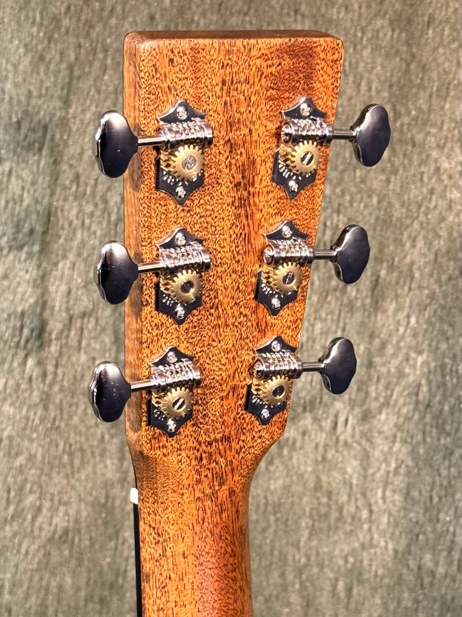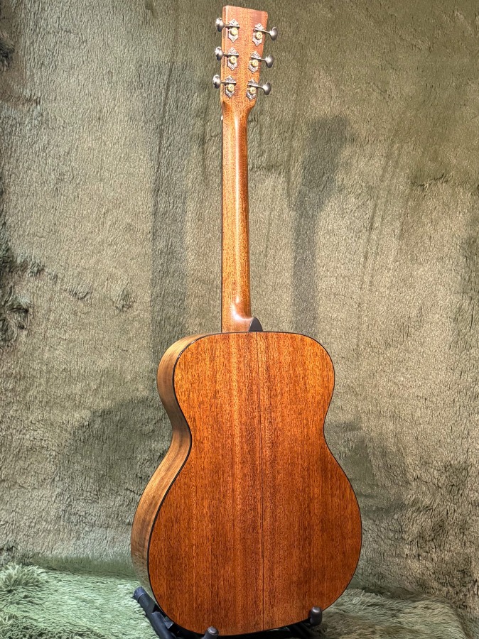 ローズウッドをサイド&バックに使うスタイル28に対し、スタイル18は柔らかく暖かみのある音色が特徴のマホガニーを横裏板に使用しております。