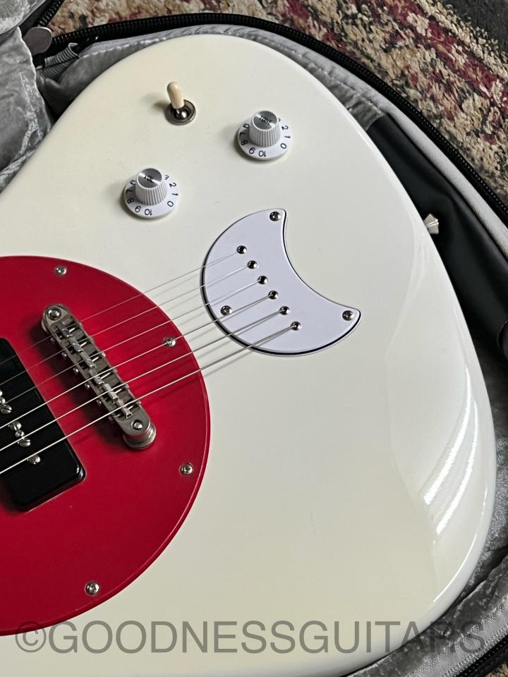 オフセットウエストされたボディシェイプに、日本国旗をイメージしたようなナイスデザイン。P-90タイプが搭載され、サウンドは良い感じです。