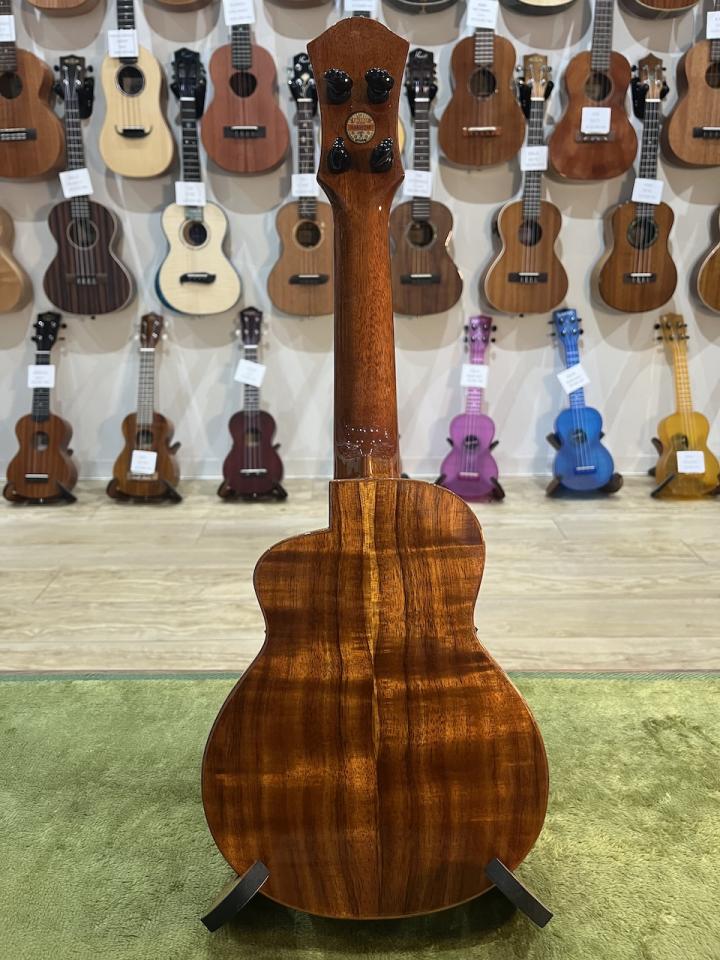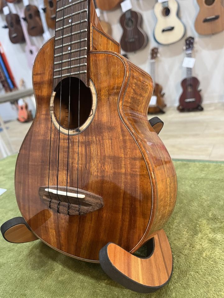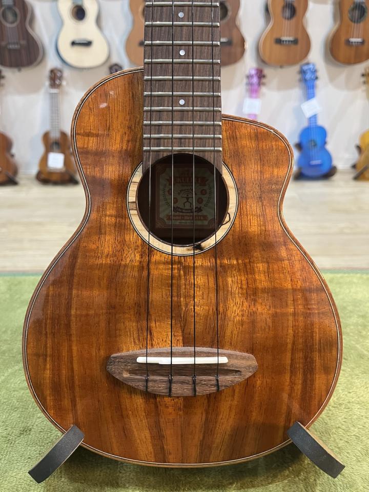 当モデルはウクレレプレイヤーのKYASさんが愛用していることで知られる広島のウクレレ製作家の光田守彦さんのデザインを採用して製作されています。