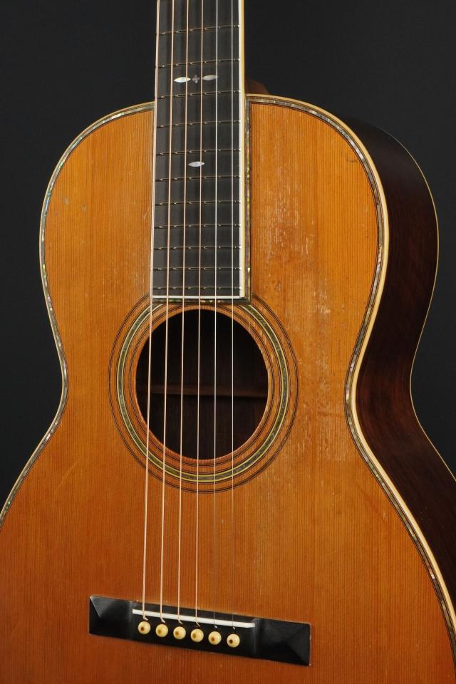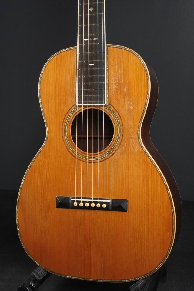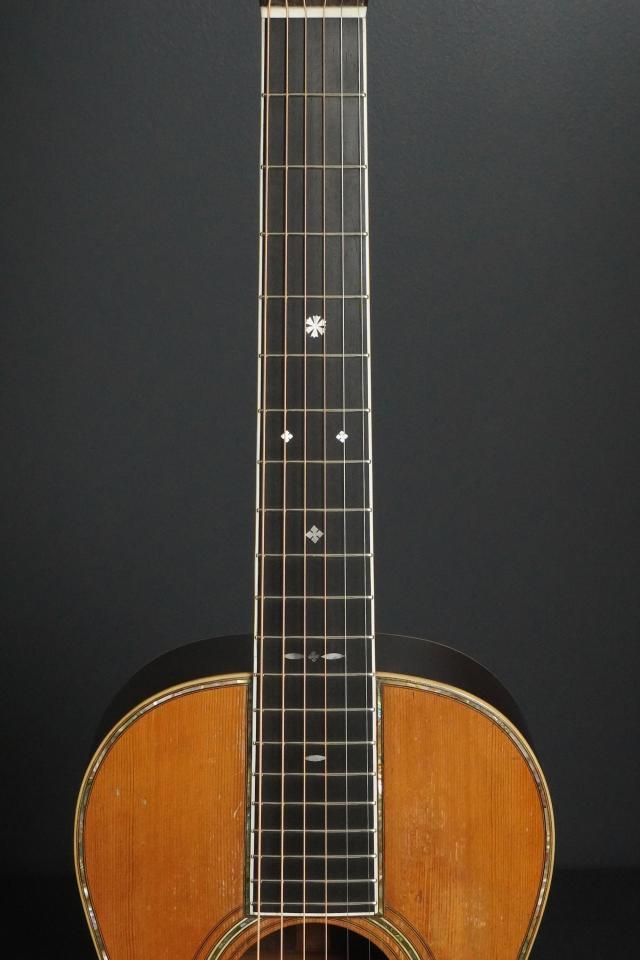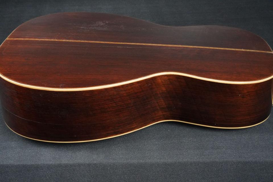 指板脇のバインディングは焼けた風合いがあり、ポジションマークのスノーフレイクインレイも、控えめなスタイル42らしい、5フレット目から始まる、上品で美しいルックスを再現しています。弾きやすく、セッティングされた、とても健康なヴィンテージです。EXライトゲージで、甘く芳醇なトーンを、ぜひ、お楽しみください。
