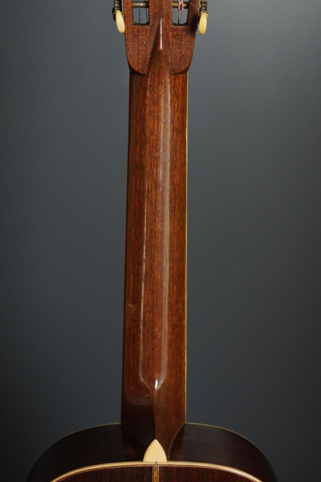 美しいマホガニーのネックは、ネックヒールのカーブも繊細で、ヒールキャップも面取り感のある立体的な作りです。