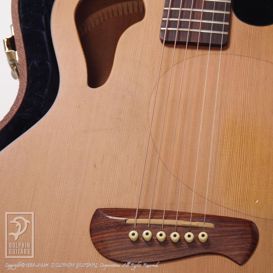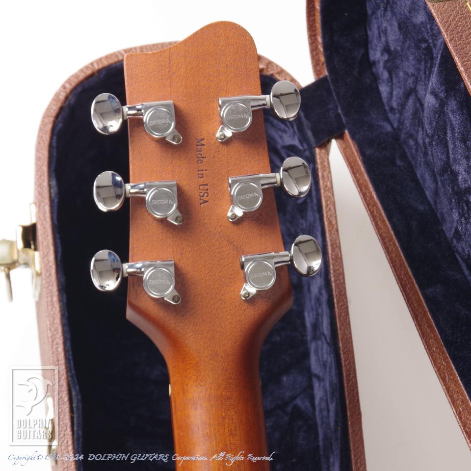 サウンドホール位置が一般的な配置とは異なり、ブレイスパターンも一般的な構造とは異なる為、タコマ独自の個性的なサウンドを生み出しております。瞬発力もあり素晴らしい箱鳴りで、極薄のサテンフィニッシュならではのカラッと乾いたトーンも魅力です。