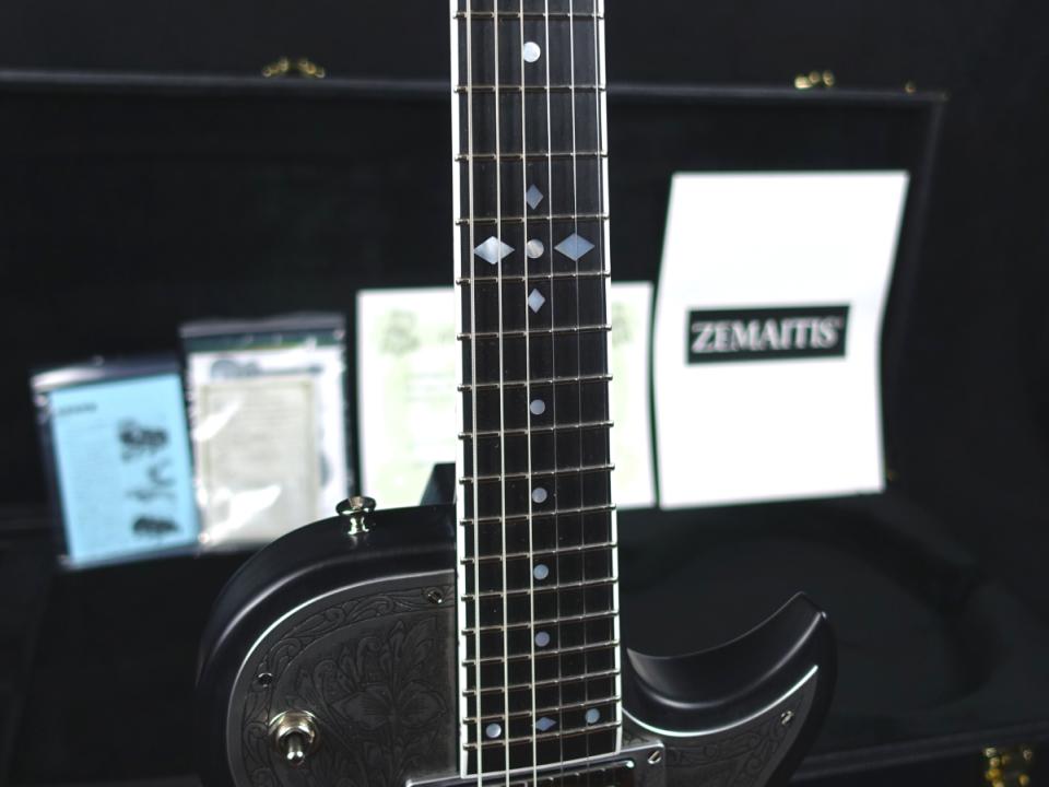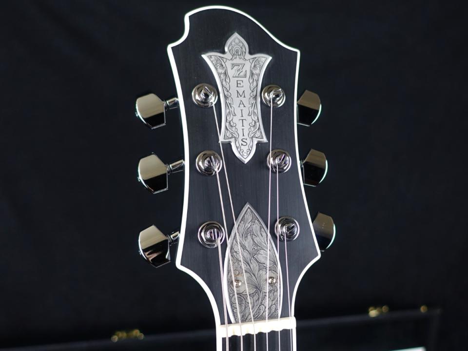 ZEMAITIS(ゼマティス/ゼマイティス):トニー・ゼマティスが1955年に作った独自デザインのエレクトリックギターから始まるイギリスのブランドで、彫刻師ダニー・オブライエンによる彫金が特徴。トニーの他界後は神田商会のもとで再興され、主要モデルはMF(メタルフロント),PF(パールフロント,DF(ディスクフロント),SUPERIOR(スーペリア)など。(ZEMAITIS/ゼマティス/ゼマイティスのキーワード検索結果はこちら)